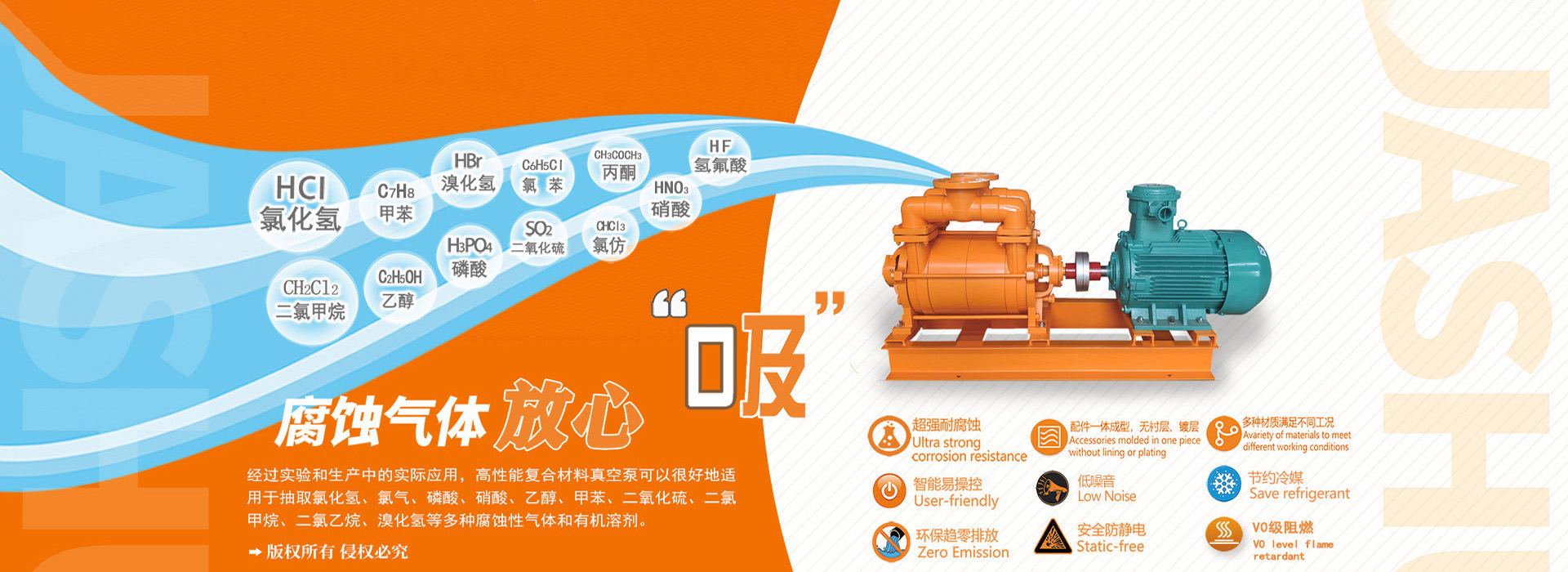淄博華舜耐腐蝕真空泵有限公司主要生產(chǎn)各種型號和規(guī)格的水噴射泵、耐酸泵等產(chǎn)品,價(jià)格優(yōu)惠,廠家直銷,原理簡單,是一家集科研開發(fā)、設(shè)計(jì)咨詢、生產(chǎn)、銷售、服務(wù)于一體,利用新型高性能復(fù)合材料,專業(yè)生產(chǎn)耐腐蝕液環(huán)真空泵的國家高新技術(shù)企業(yè), 坐落于“中國泵業(yè)名城”---山東省淄博市博山區(qū),公司通過了ISO9001質(zhì)量體系認(rèn)證。公司獨(dú)立研發(fā)的具有多項(xiàng)自主知識(shí)產(chǎn)權(quán)的專利產(chǎn)品-耐腐蝕系列水環(huán)式真空泵,通過了省級科技成果鑒定,處于“國際先進(jìn)水平”。 產(chǎn)品過流部件采用三大系列高性能復(fù)合材料(HS-V130、HS-V110、HS-V80)一體成型,耐腐蝕范圍廣、無襯層不脫落、節(jié)能效率高、運(yùn)行可靠、環(huán)保節(jié)水、 體積小、重量輕、使用壽命長等特點(diǎn)。